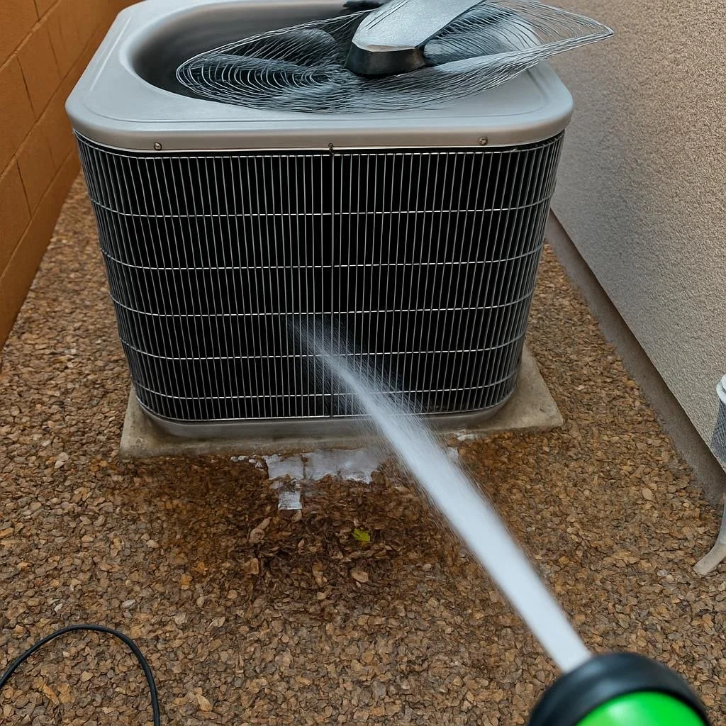 Remove leaves and debris from around the condenser unit to ensure proper airflow